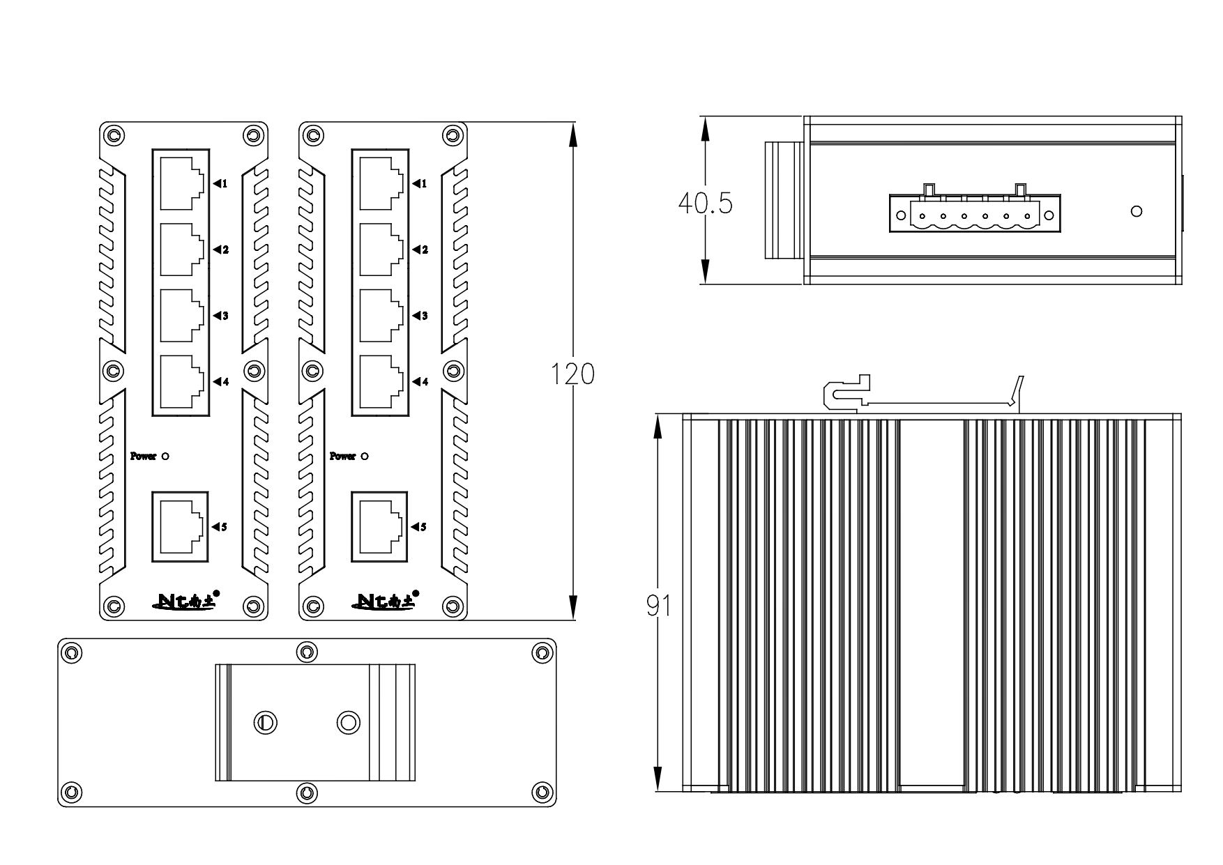 外殼:金屬材質 安裝:DIN 卡軌式,壁掛式安裝 重量:0.36Kg 尺寸:120X91x40.5mm(長 x 寬 x 高) |