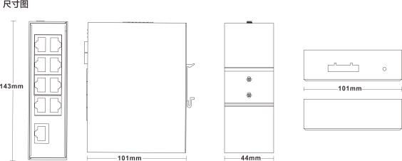 外殼:金屬材質 安裝:DIN 卡軌式,壁掛式安裝 重量:0.64Kg 尺寸 :143x 101x 44mm (長 x 寬 x 高) |