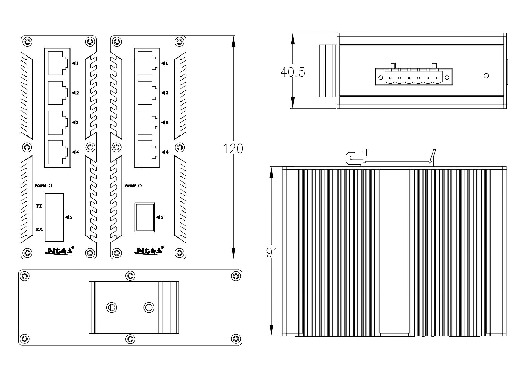 外殼:金屬材質 安裝:DIN 卡軌式,壁掛式安裝 重量:0.36Kg 尺寸:120 x 91 x 40.5mm (長 x 寬 x 高) |