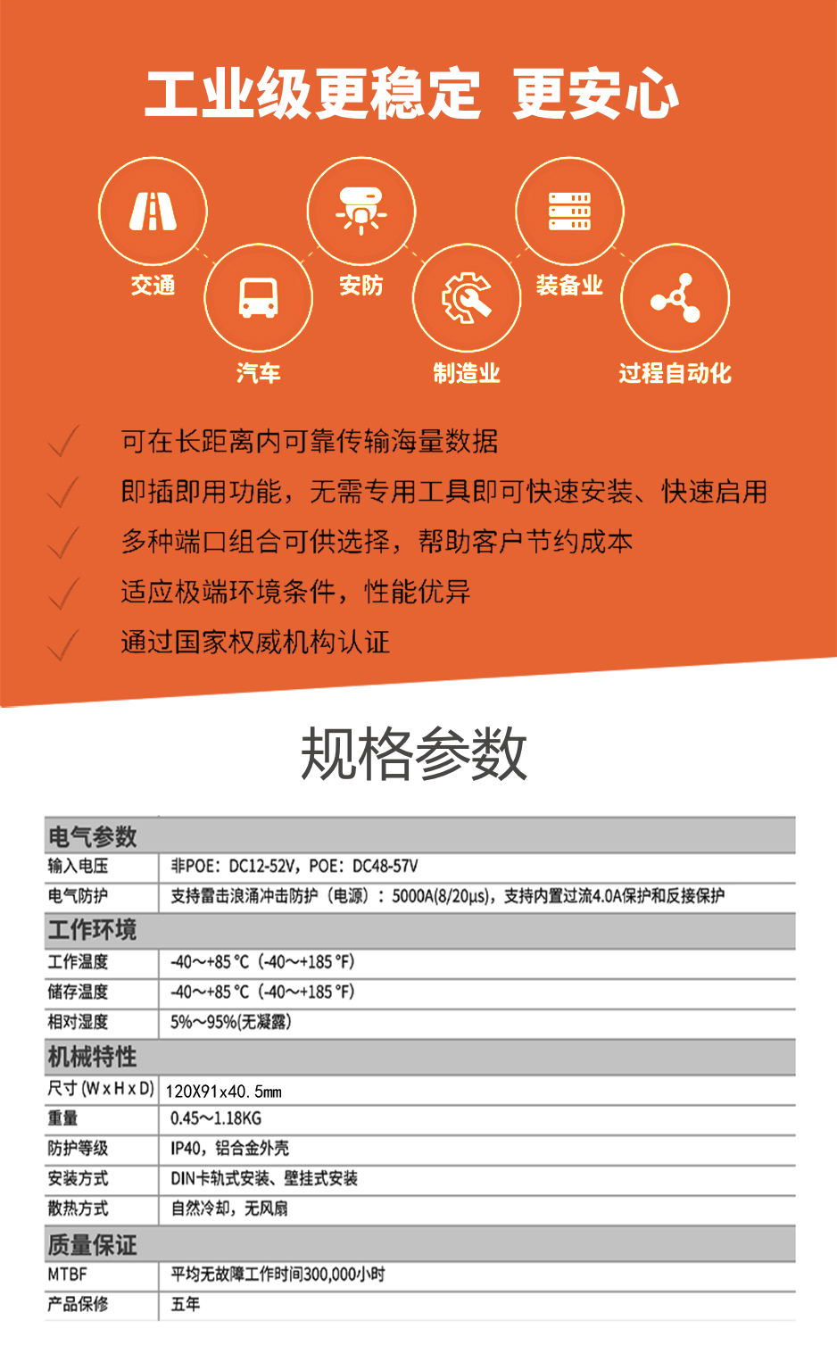 工業(yè)級(jí)POE(NT品牌)百兆非網(wǎng)管2光4電(4POE)-SC接口單模雙纖20KM-導(dǎo)軌式-DC48~57V供電-寬溫(-40℃-85℃)默認(rèn)不含AC電源適配器。 |