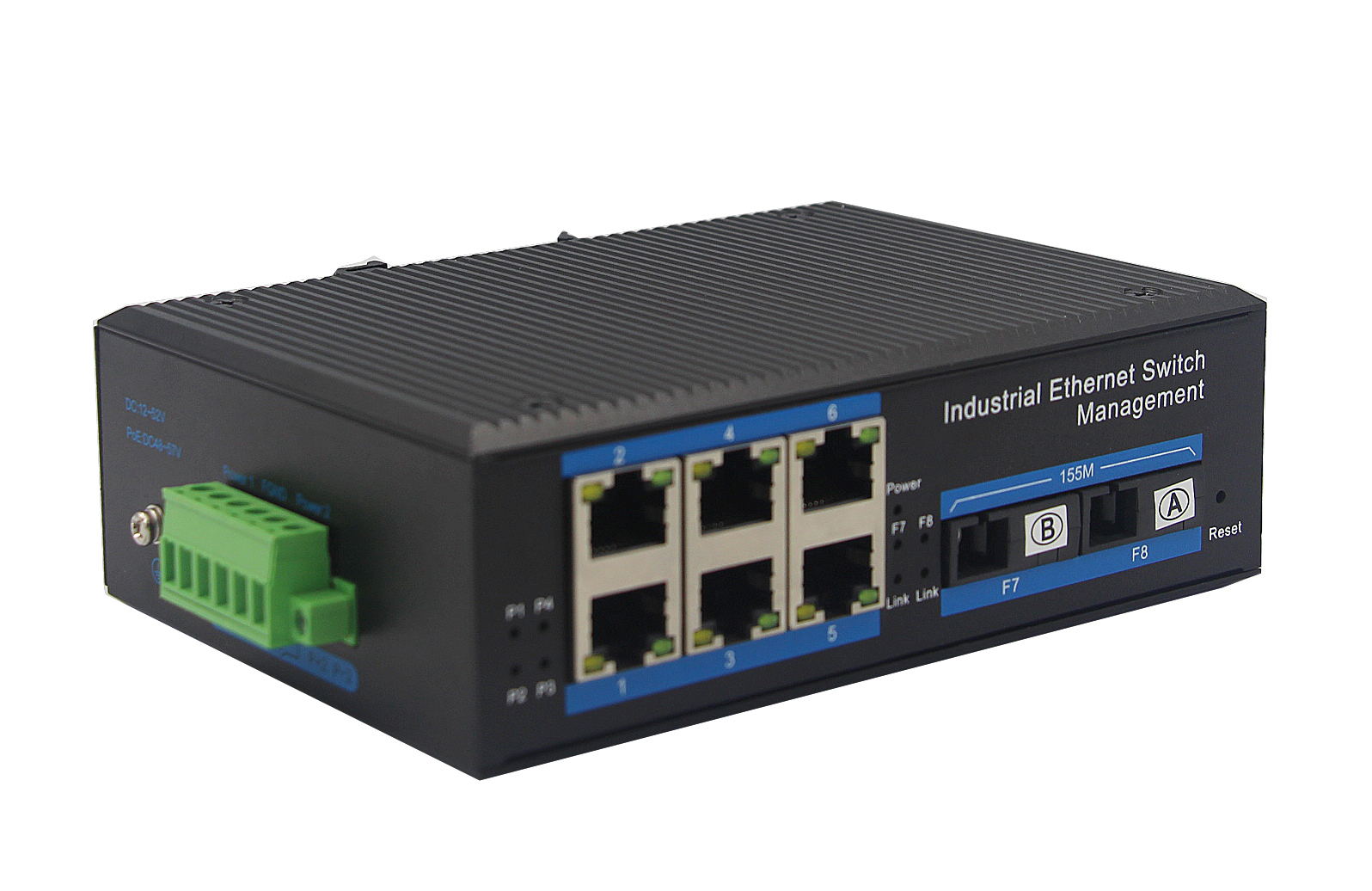 2個百兆光+6個百兆電、SFP接口(不含光模塊)、導軌式、DC12-52V供電