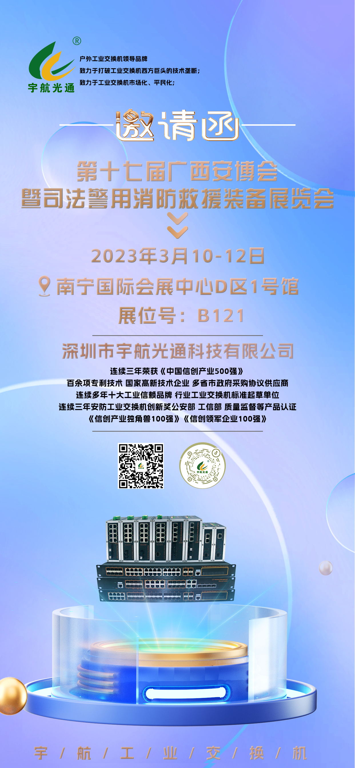 一年之計在于春,隨著天氣回暖,各地安防展會活動紛至沓來!2023年宇航工業交換機整裝待發,邁著更堅定的步伐再度襲來。同時,宇航人將以更加飽滿的精神狀態現身全國各地的展會和渠道會中,也將帶來適應市場適應各大行業的新產品。屆時,歡迎各位朋友蒞臨參觀指導~