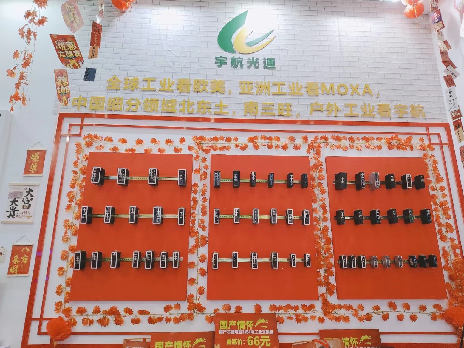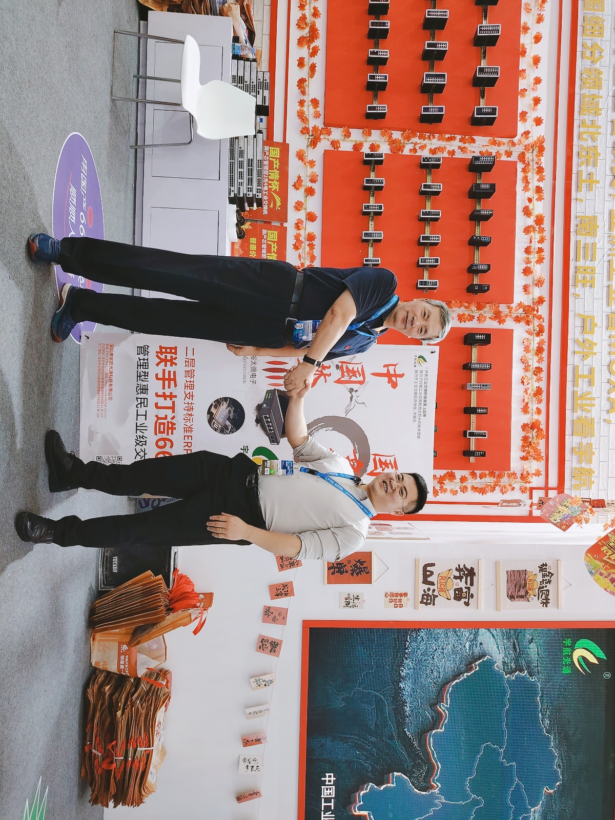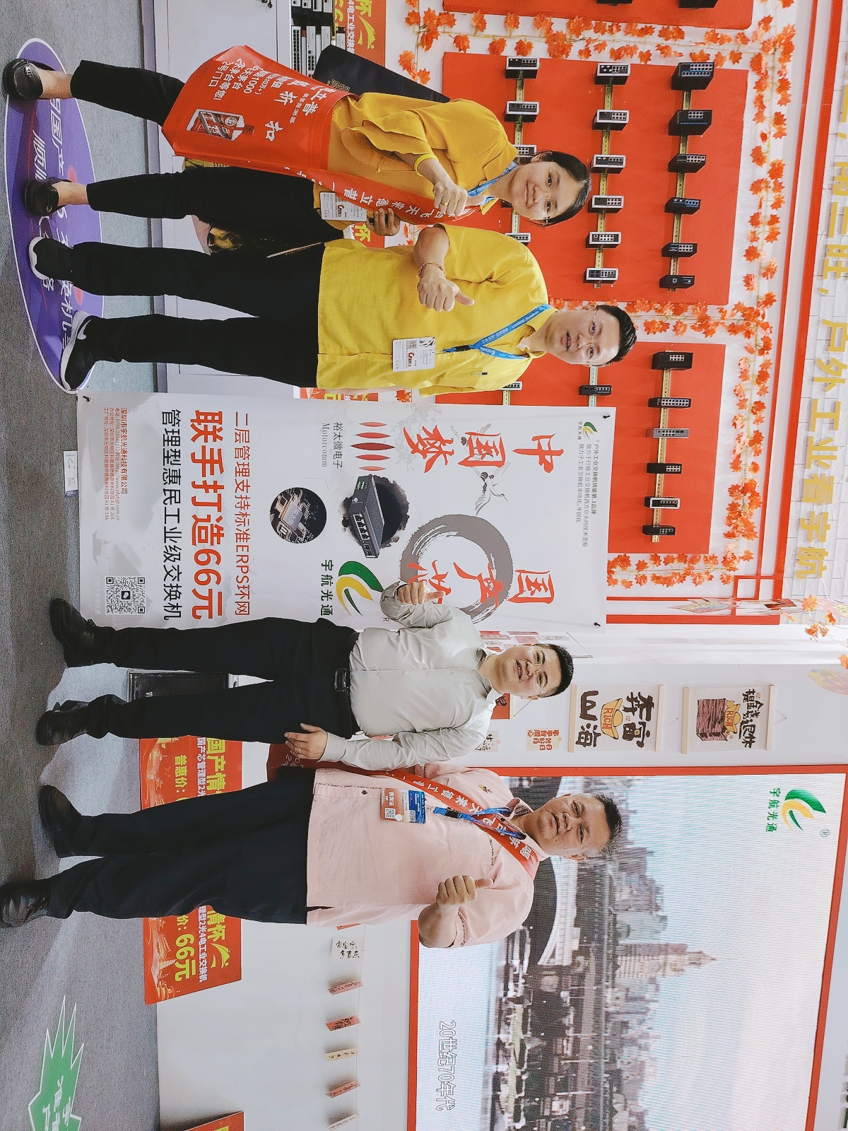 宇航工業(yè)交換機劉總受邀參加CPSE安博會開幕式(第二排左二) 宇航是戶外工業(yè)銷量第一品牌,本次展會宇航順應(yīng)潮流,以中國紅為背景,結(jié)合當(dāng)前“00后”慣用的網(wǎng)絡(luò)流行語來打造展館,兩種元素相互碰撞,獨具匠心,整個展館充滿活力和年輕氣息,吸引了眾多嘉賓駐足觀看,前來打卡留念的觀眾絡(luò)繹不絕。