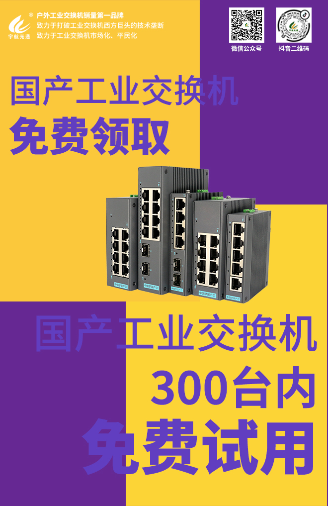 無(wú)論您是新客戶還是老客戶,只要資料齊全且征信良好,即可在宇航免費(fèi)領(lǐng)取一臺(tái)全國(guó)產(chǎn)工業(yè)交換機(jī)!不限型號(hào),只限全國(guó)產(chǎn)工業(yè)交換機(jī),真正實(shí)現(xiàn)零成本試用。