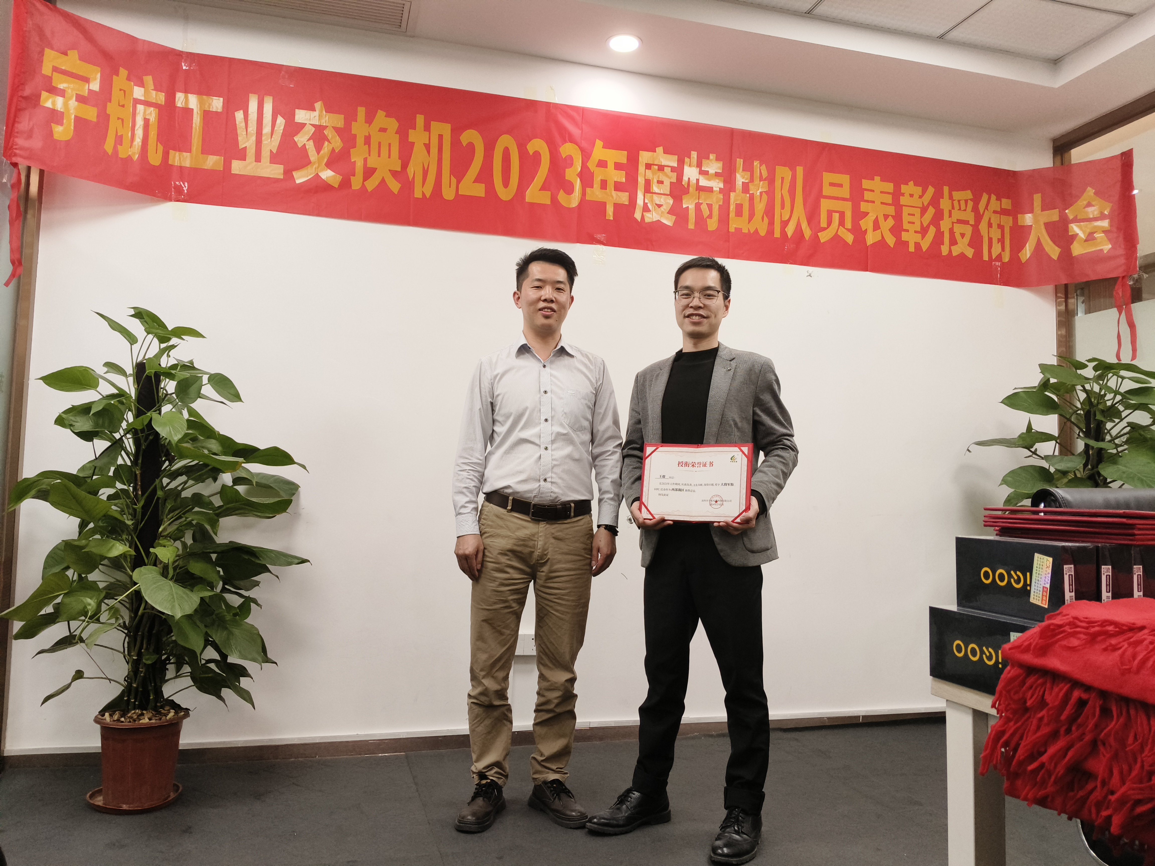 宇航工業交換機余俊云在2023年工作期間,認真負責、無私奉獻、戰績卓越,授予“大將軍”銜,同時,任命為西北戰區銷售總監。