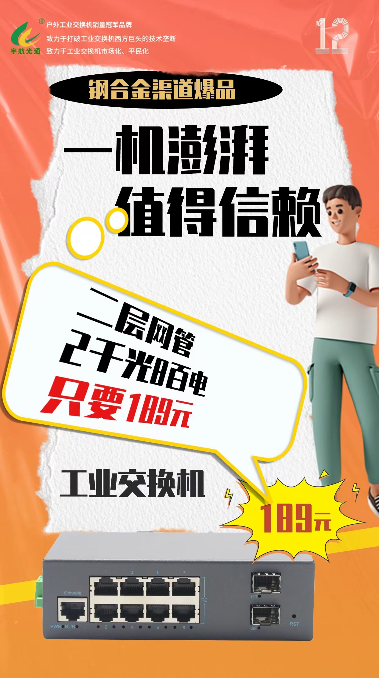 值得一提的是,宇航工業(yè)交換機(jī)在本次大會(huì)上重點(diǎn)展示了最新推出的鋼合金渠道爆品系列產(chǎn)品。這一系列產(chǎn)品是宇航在深入研究市場需求和競爭態(tài)勢的基礎(chǔ)上,應(yīng)市場要求推出的全國產(chǎn)鋼合金系列產(chǎn)品。該系列產(chǎn)品不僅繼承了宇航工業(yè)交換機(jī)一貫的高品質(zhì)、高可靠性特點(diǎn),還在價(jià)格上更具競爭力,為市場端和客戶提供了更多元化的選擇。