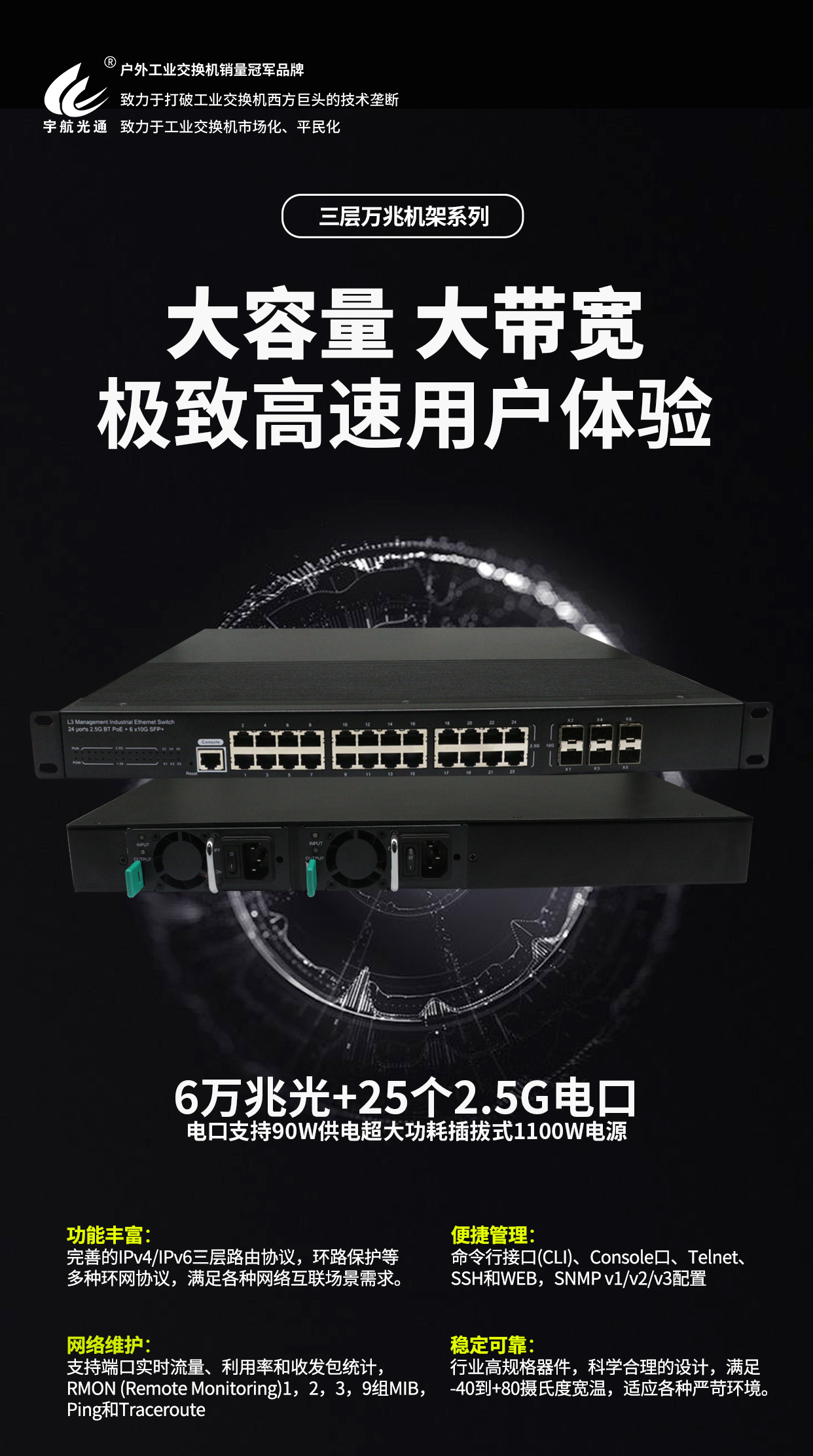 宇航,戶外工業(yè)交換機(jī)銷量冠軍品牌。宇航,致力于打破工業(yè)交換機(jī)西方巨頭的技術(shù)壟斷,致力于工業(yè)交換機(jī)市場(chǎng)化、平民化!