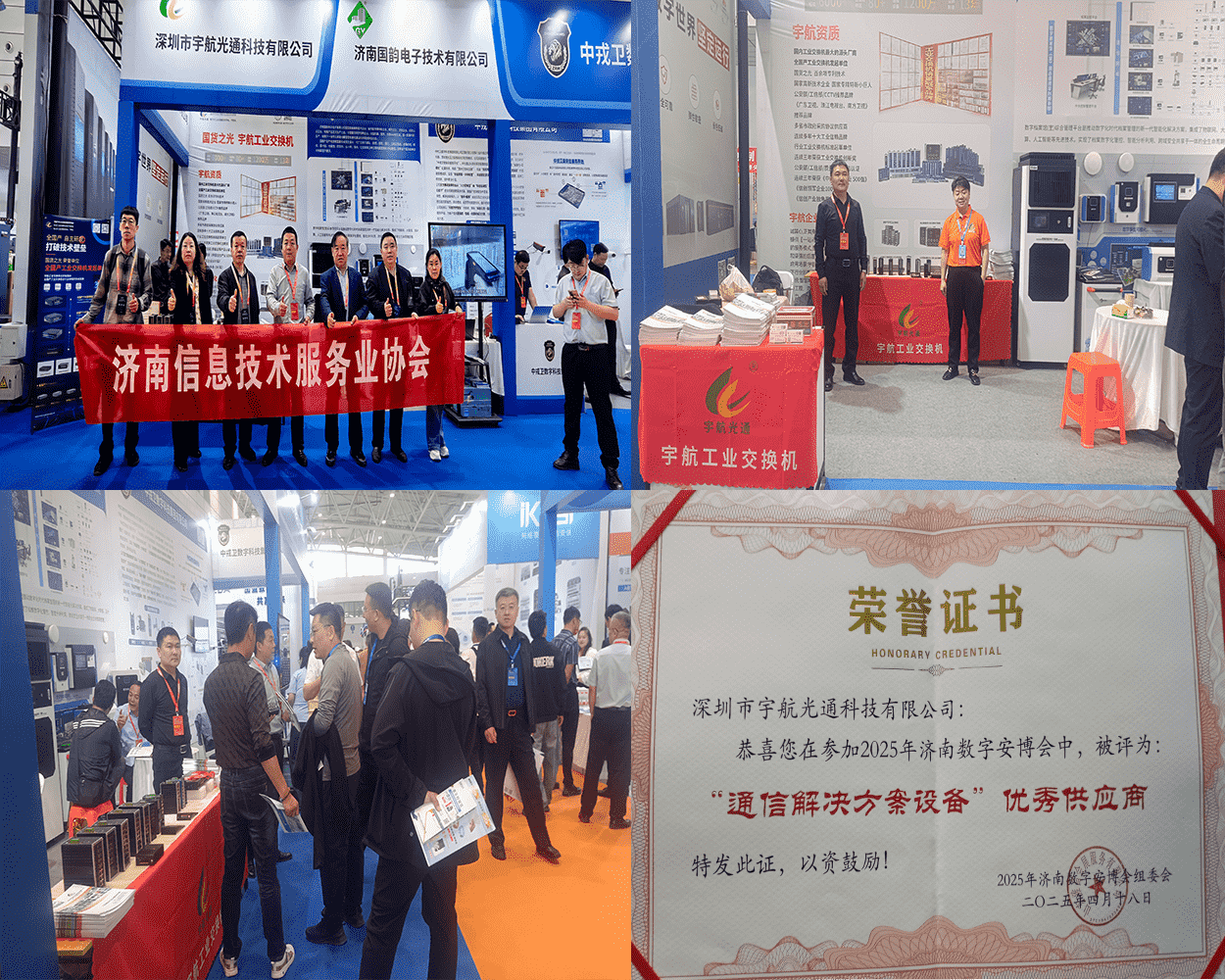 此次系列展會中,宇航工業(yè)交換機展示了最新一代國產(chǎn)化工業(yè)通信解決方案,吸引眾多行業(yè)用戶駐足交流。各地參展觀眾對宇航自主研發(fā)的全系列工業(yè)級交換設備給予高度評價,尤其對宇航工業(yè)交換機在惡劣環(huán)境下的穩(wěn)定性能和信創(chuàng)領(lǐng)域的技術(shù)突破表示贊賞。在濟南數(shù)字安防產(chǎn)業(yè)博覽會上,宇航憑借其自主創(chuàng)新的國產(chǎn)通信技術(shù)體系,榮膺大會"通信解決方案設備優(yōu)秀供應商"稱號。