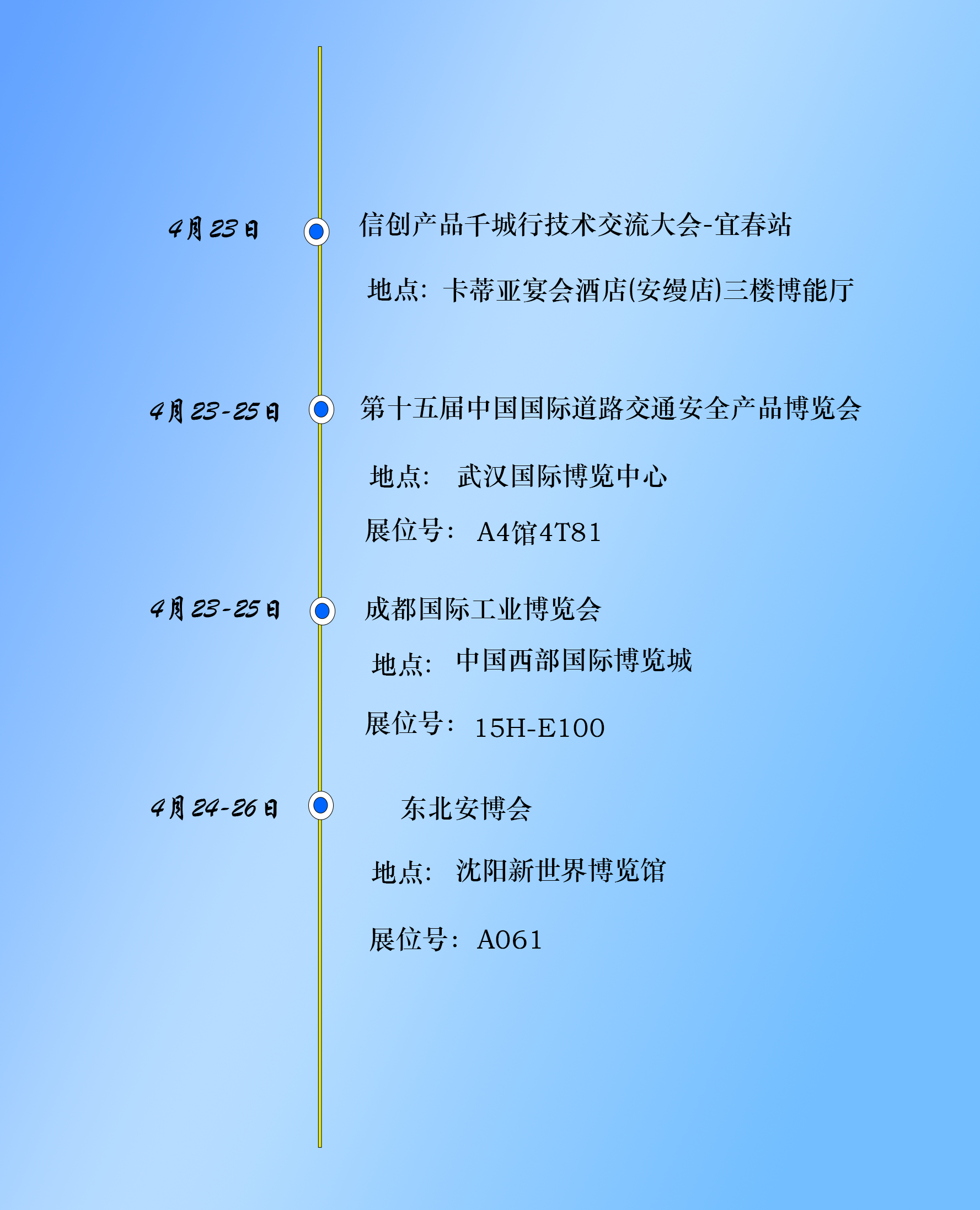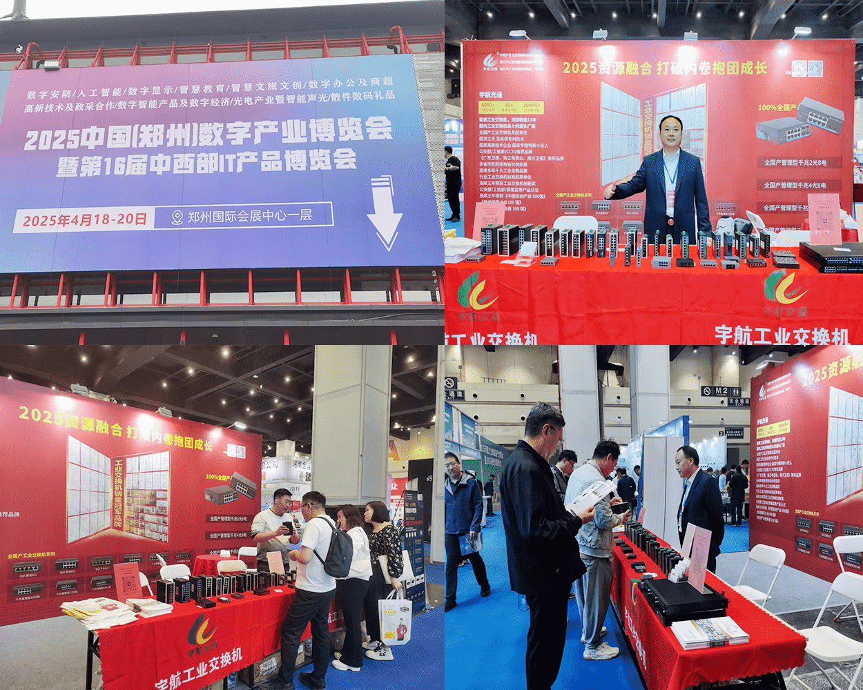2025年4月18日至4月21日,中國戶外工業(yè)交換機銷量冠軍品牌——宇航工業(yè)交換機連續(xù)亮相三大行業(yè)盛會:2025第24屆中國(濟南)數(shù)字安防產(chǎn)業(yè)博覽會、第十六屆中國中西部消費電子博覽會(鄭州)以及2025信創(chuàng)產(chǎn)品千城行技術(shù)交流大會-吉安站。