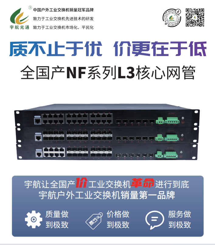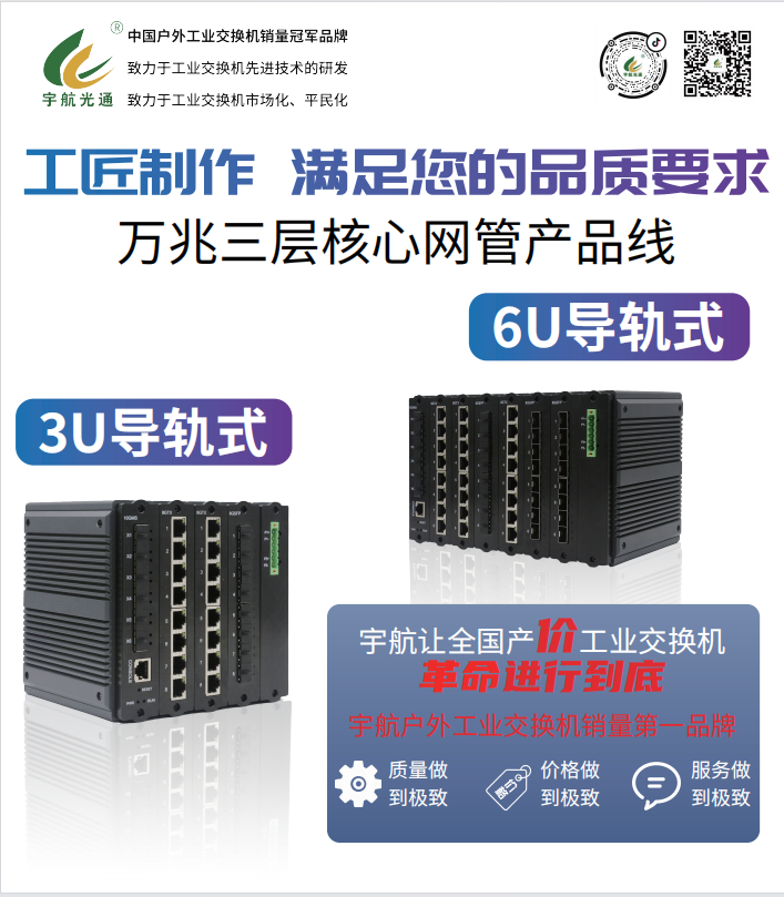 宇航全國產工業(yè)交換機系列已實現(xiàn)整體升級,邁上全新臺階,本次重點展示的全國產萬兆核心與二層交換機,徹底證明了國產方案已能無縫替代美系、臺系產品,且不懼性能比較,全國產工業(yè)交換機已告別“可用”,進入“好用””的全新階段。我們提供多樣化的規(guī)格選擇,以滿足您不同場景的嚴苛需求。