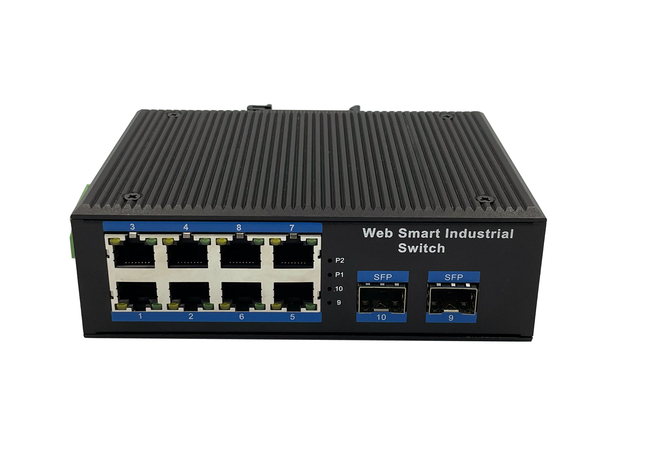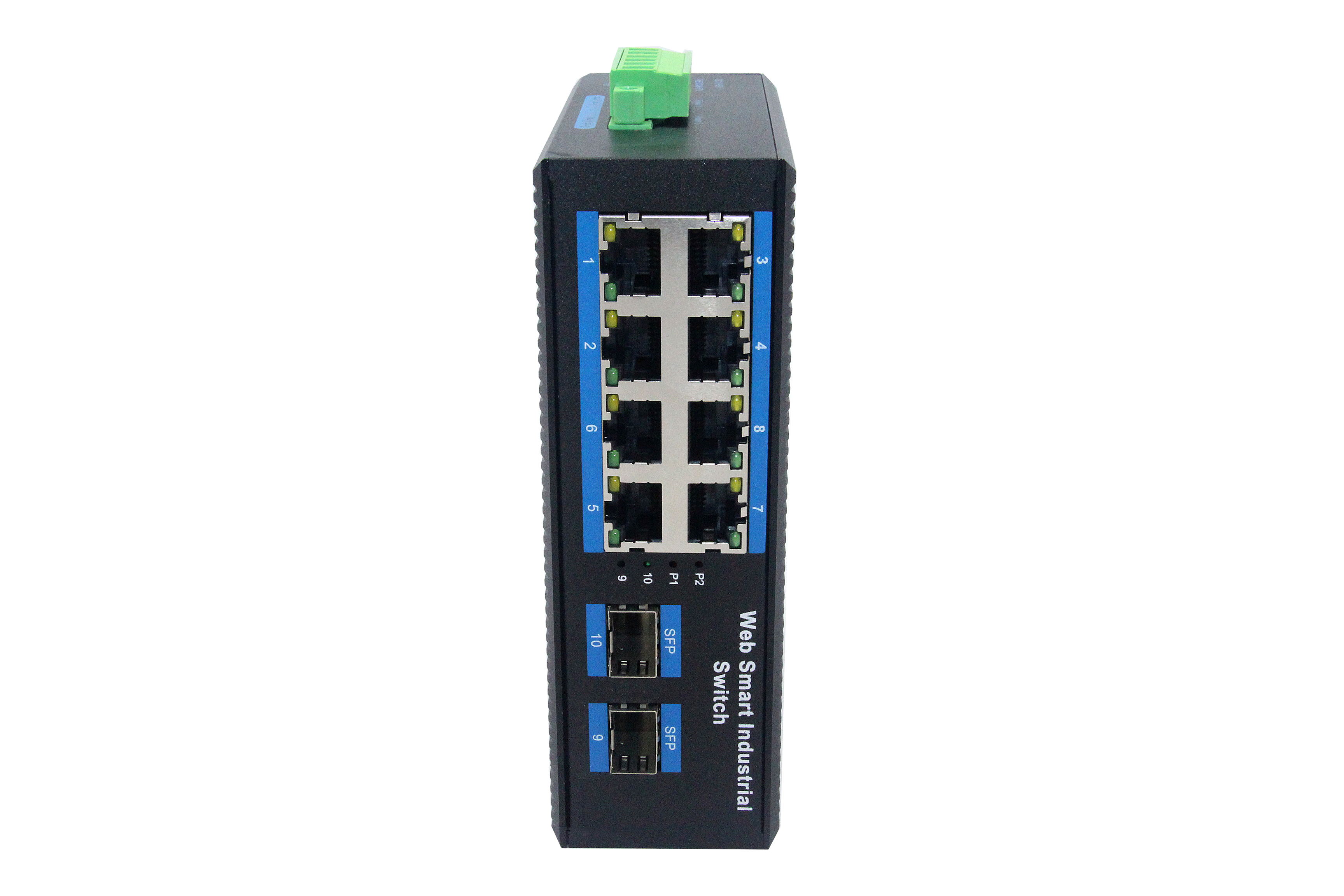 WEB SMart網管型千兆2光8電YH628GS-W-SFP 工業以太網交換機,產品符合FCC、CE、ROHS標準。支持2個千兆光口和8個千兆電口;該系列交換機采用低功耗、無風扇設計,確保無噪聲干擾,同時支持-40~80℃工作溫度和良好的EMC電磁兼容性能,保證在惡劣的工業環境中保持穩定的工作,為工廠自動化,智能交通,視頻監控等工業應用領域組建快速穩定的網絡終端接入環網網絡提供安全可靠的解決方案。IP40防護等級的外殼及 LED 指示燈,使之成為一個即插即用的工業級設備,為用戶的以太網設備聯網提供可靠、便捷的解決方案。