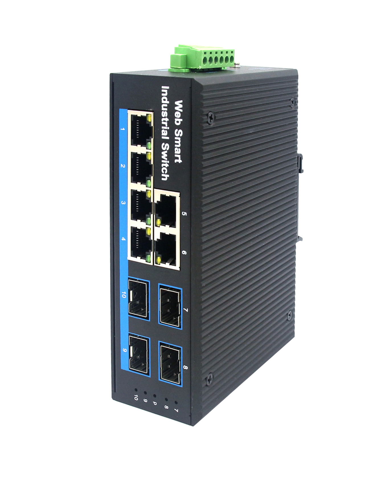 4個千兆光+6個千兆電、SFP接口(不含光模塊)、導軌式、DC12-52V供電-寬溫(-40℃-85℃) |
