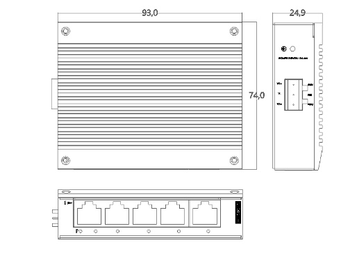 外殼:金屬材質 安裝:DIN 卡軌式,壁掛式安裝 重量:0.2Kg 尺寸 :93 x 74 x 24.9mm(寬 x 深 x 高) |