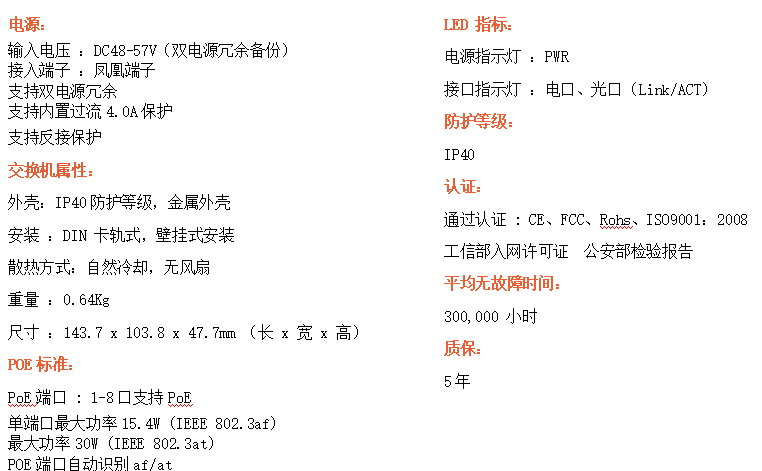 4路百兆電口+2路百兆FX光口工業級以太網交換機,支持4個10Base-T/100Base-TX電口和2個100Base-X光口。產品符合FCC、CE、ROHS標準。AF24F系列交換機具有-30℃~75℃的工作溫度,具有超強的堅固度能適應各種嚴苛環境,也可以非常方便的安置在空間緊湊的控制箱中。導軌的安裝特性、寬溫操作及擁有IP40防護等級的外殼及LED指示燈,使AF24F成為一個即插即用的工業級設備,為用戶的以太網設備聯網提供可靠、便捷的解決方案。