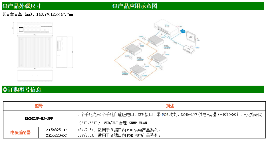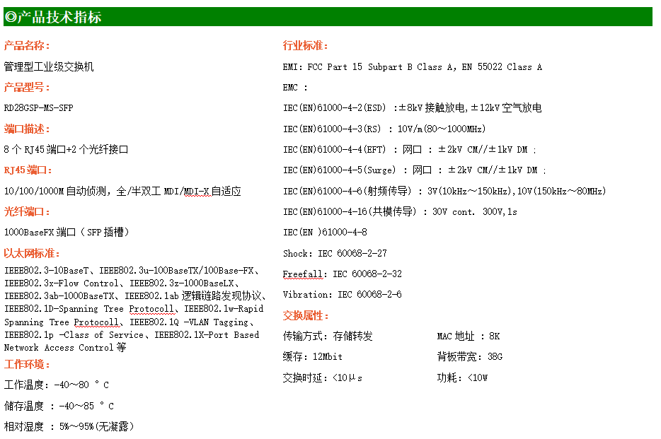 RD28GSP-MS是網(wǎng)管型工業(yè)以太網(wǎng)POE交換機,產(chǎn)品符合FCC、CE、RoHS標準。支持2個千兆光口和8個千兆電口;支持工業(yè)現(xiàn)場所需的以太網(wǎng)二層協(xié)議,保證通信網(wǎng)絡的穩(wěn)定性;該系列交換機采用低功耗、無風扇設計,確保無噪聲干擾,同時支持-40~80℃工作溫度和良好的EMC電磁兼容性能,保證在惡劣的工業(yè)環(huán)境中保持穩(wěn)定的工作,為工廠自動化,智能交通,視頻監(jiān)控等工業(yè)應用領域組建快速穩(wěn)定的網(wǎng)絡終端接入網(wǎng)絡提供安全可靠的解決方案。