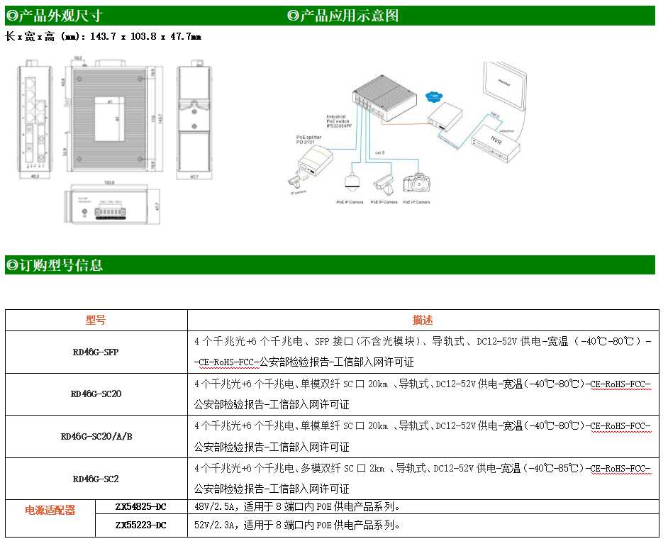 RD46GP系列工業級以太網交換機,提供4個千兆光口+6個千兆電口,支持4路PoE,產品符合FCC、CE、ROHS標準,支持工業現場所需的以太網協議,保證通信網絡的穩定性。該系列交換機采用低功耗、無風扇設計,確保無噪聲干擾,同時支持-40~80℃工作溫度和良好的EMC電磁兼容性能,保證在惡劣的工業環境中保持穩定的工作,為工廠自動化,智能交通,視頻監控等工業應用領域組建快速穩定的網絡終端接入網絡提供安全可靠的解決方案。