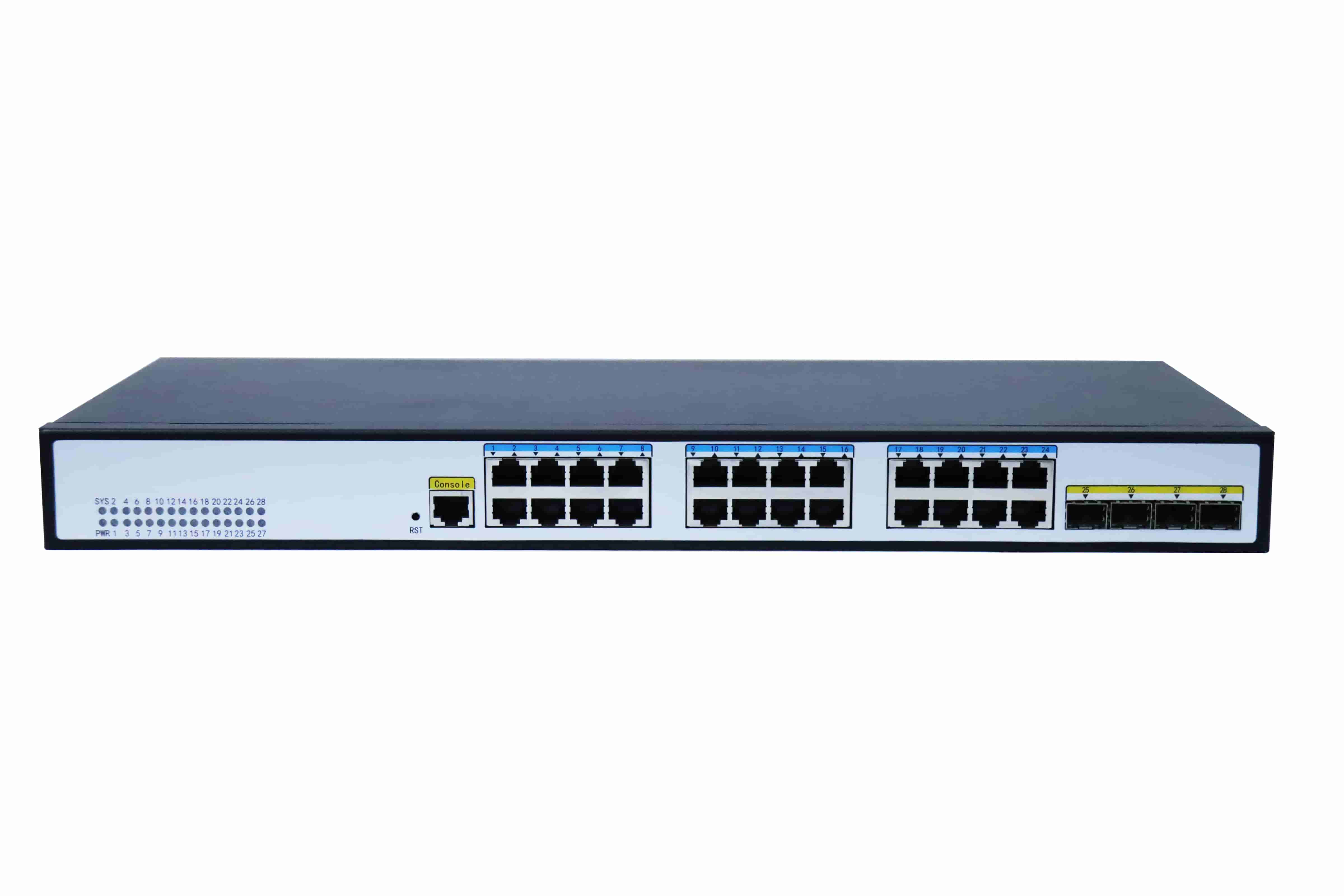 • 提供10/12/26/28多規格端口產品,所有端口均具備千兆線速轉發能力,滿足不同用戶需求。