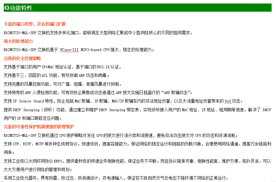 ●網絡冗余:支持STP/RSTP/MSTP,支持ERPS