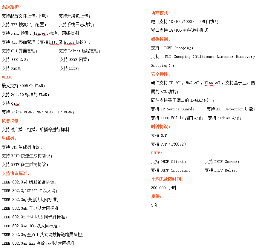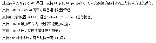 ●管理功能:支持WEB、CLI、SNMP等多種管理方式