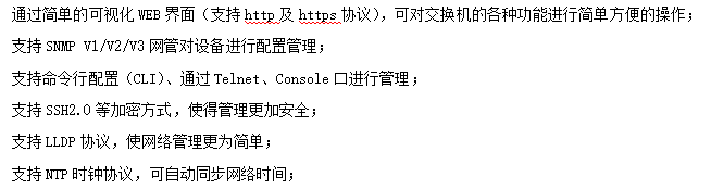 ●管理功能:支持WEB、CLI、SNMP等多種管理方式