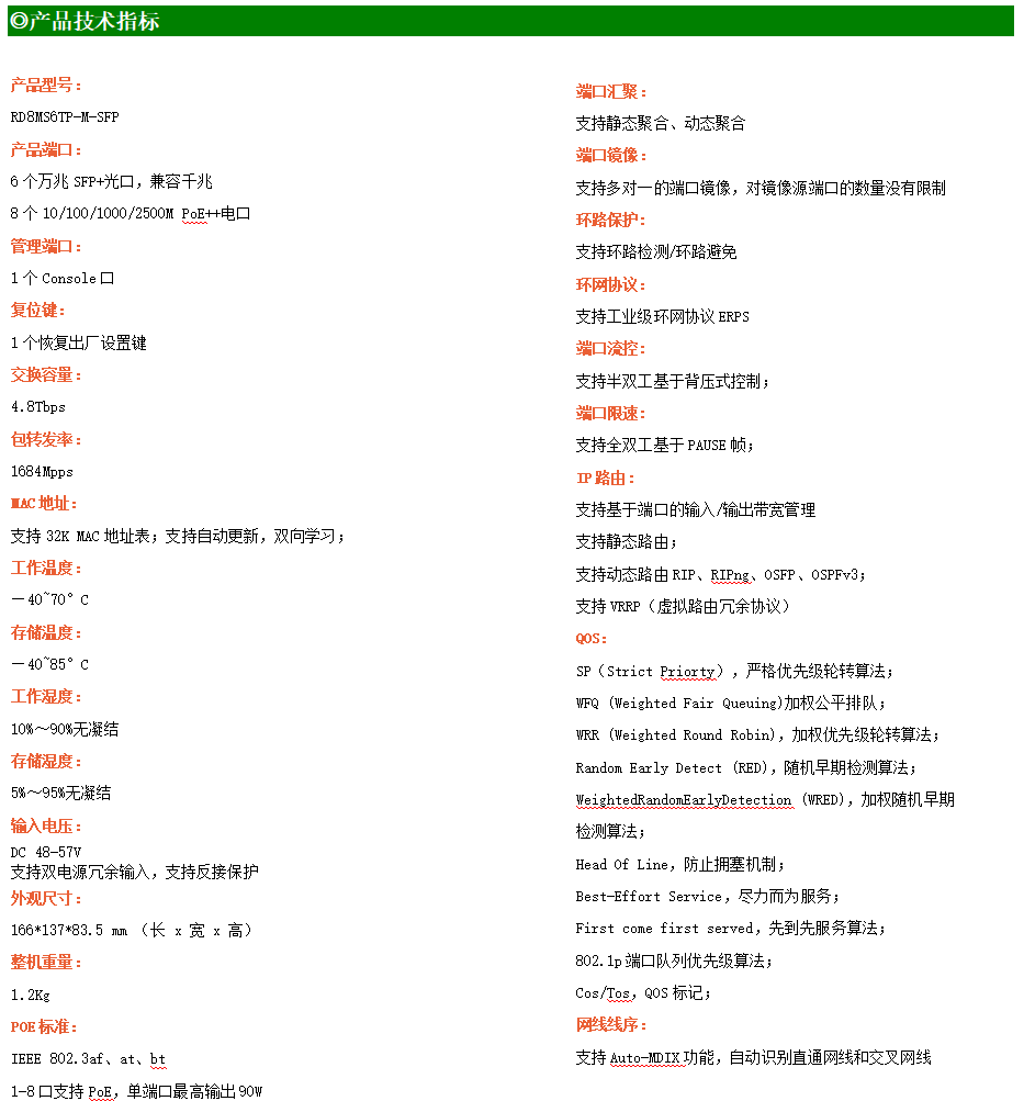 ●VLAN:支持802.1Q VLAN、QinQ、Voice VLAN、MAC VLAN、IP VLAN