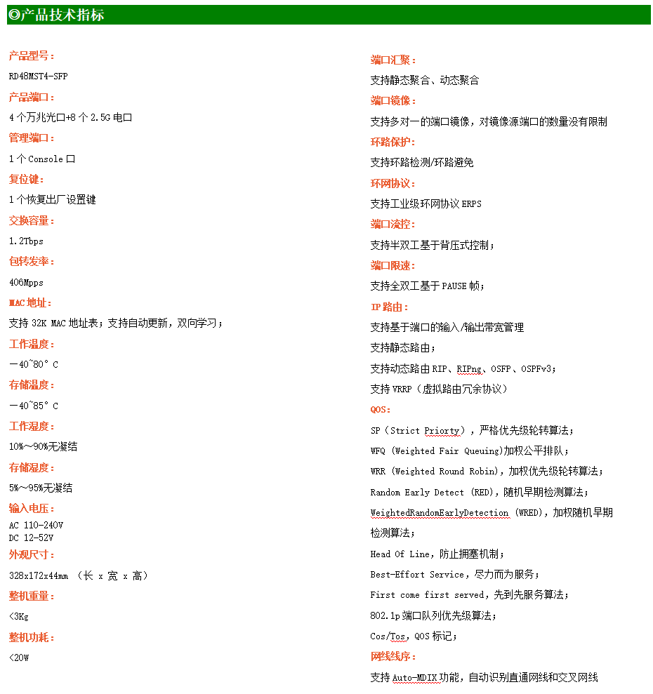 ●網絡冗余:支持STP/RSTP/MSTP,支持ERPS(自愈時間<20ms)