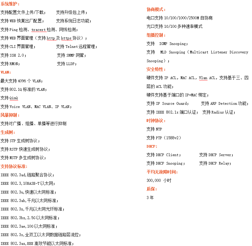 ●管理功能:支持WEB、CLI、SNMP等多種管理方式