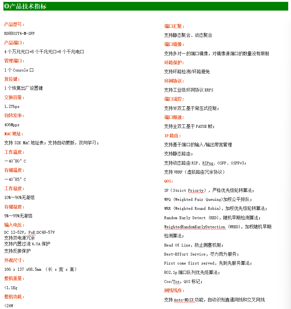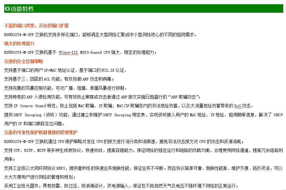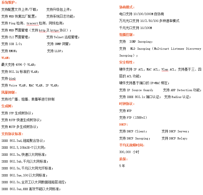●網絡冗余:支持STP/RSTP/MSTP,支持ERPS(自愈時間<20ms)