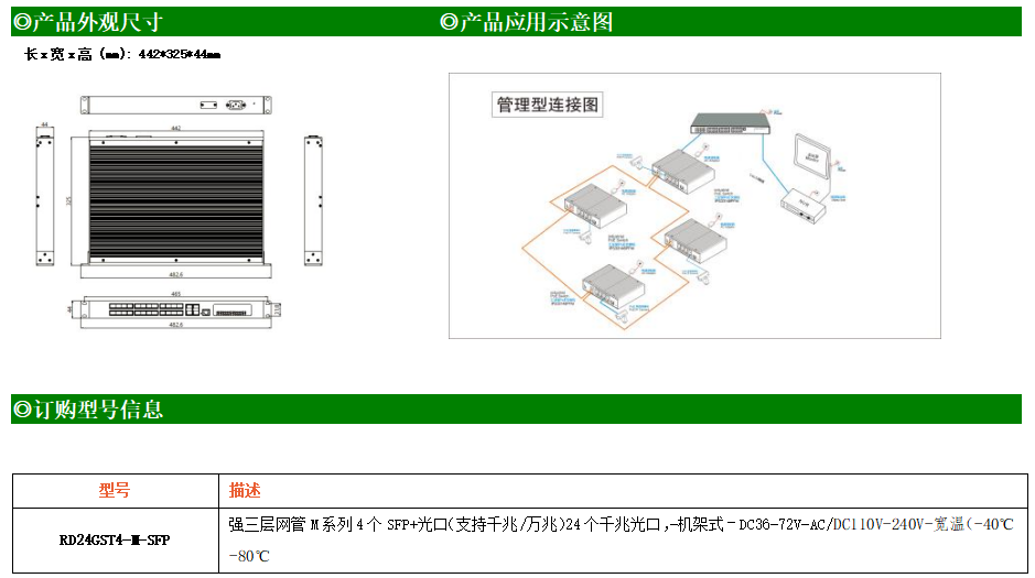 RD24GST4-M-SFP交換機(jī)是我司推出的一款萬(wàn)兆三層交換機(jī),配備4個(gè)萬(wàn)兆SFP+光口和24個(gè)千兆光口,具備先進(jìn)的硬件處理能力和最豐富的業(yè)務(wù)特性。支持IPv4/IPv6 硬件雙棧及線速轉(zhuǎn)發(fā),使客戶能夠從容應(yīng)對(duì)即將帶來(lái)的IPv6 時(shí)代其提供高容量的交換能力。RD24GST4-M-SFP交換機(jī)具有-40℃~80℃的工作溫度,具有超強(qiáng)的堅(jiān)固度能適應(yīng)各種嚴(yán)苛環(huán)境。導(dǎo)軌式安裝特性、寬溫操作,使RD24GST4-M-SFP的交換機(jī)成為一個(gè)即插即用的工業(yè)級(jí)設(shè)備,為用戶的以太網(wǎng)設(shè)備聯(lián)網(wǎng)提供可靠、便捷的解決方案。