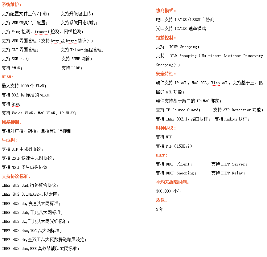 ●VLAN:支持802.1Q VLAN、QinQ、Voice VLAN、MAC VLAN、IP VLAN