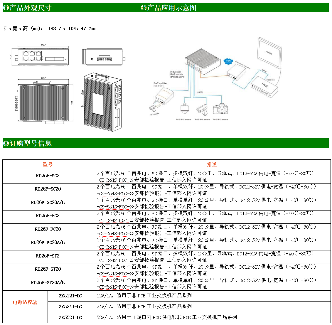 6路百兆電口+2路百兆FX光口工業級以太網交換機,支持6個10Base-T/100Base-TX電口和2個100Base-X光口。產品符合FCC、CE、ROHS標準。RD26F系列交換機具有-40℃~80℃的工作溫度,具有超強的堅固度能適應各種嚴苛環境,也可以非常方便的安置在空間緊湊的控制箱中。導軌的安裝特性、寬溫操作及擁有IP40防護等級的外殼及LED指示燈,使RD26F成為一個即插即用的工業級設備,為用戶的以太網設備聯網提供可靠、便捷的解決方案。