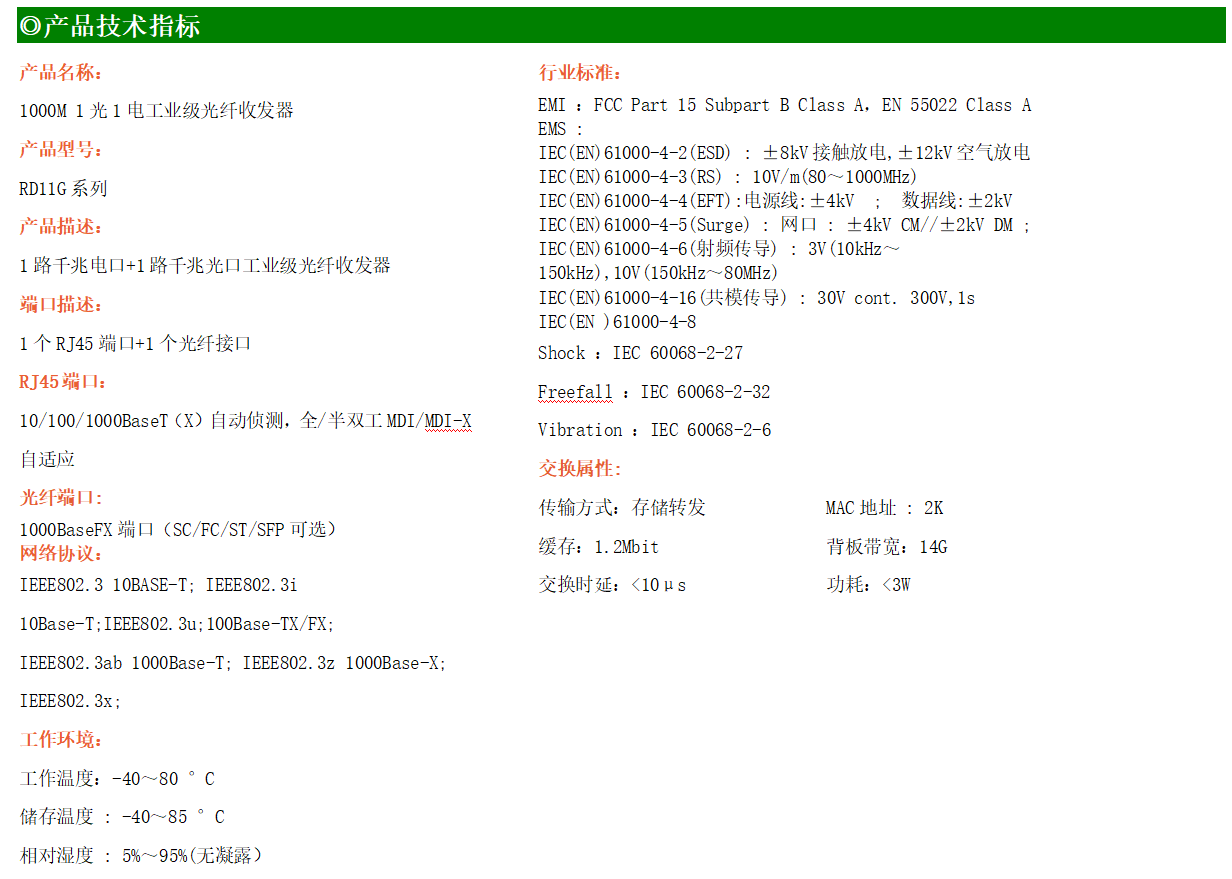 1路千兆電口+1路千兆FX光口工業(yè)級(jí)以太網(wǎng)交換機(jī),支持1個(gè)10Base-T/100Base-T/1000Base-TX電口和1個(gè)1000Base-X光口。產(chǎn)品符合FCC、CE、ROHS標(biāo)準(zhǔn)。RD11G系列交換機(jī)具有-40℃~80℃的工作溫度,具有超強(qiáng)的堅(jiān)固度能適應(yīng)各種嚴(yán)苛環(huán)境,也可以非常方便的安置在空間緊湊的控制箱中。導(dǎo)軌的安裝特性、寬溫操作及擁有IP40防護(hù)等級(jí)的外殼及LED指示燈,使RD11G成為一個(gè)即插即用的工業(yè)級(jí)設(shè)備,為用戶的以太網(wǎng)設(shè)備聯(lián)網(wǎng)提供可靠、便捷的解決方案。