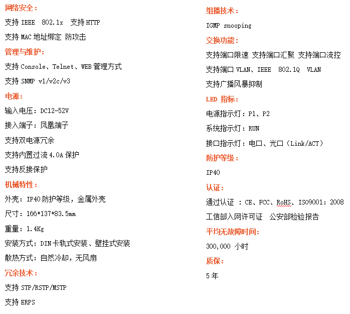 ●管理功能:支持WEB、CLI、SNMP管理方式