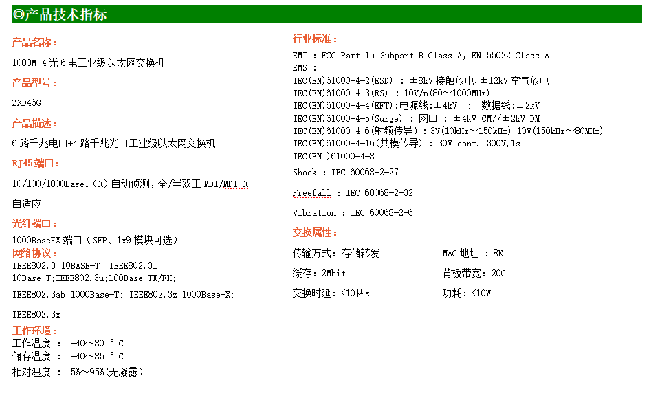 6路千兆電口+4路千兆光口工業(yè)級以太網(wǎng)交換機(jī),支持6個(gè)10/100/1000Base-T(x)電口和4個(gè)1000Base-X光口。產(chǎn)品符合FCC、CE、ROHS標(biāo)準(zhǔn)。RD46G交換機(jī)具有-40℃~80℃的工作溫度,具有超強(qiáng)的堅(jiān)固度能適應(yīng)各種嚴(yán)苛環(huán)境,也可以非常方便的安置在空間緊湊的控制箱中。導(dǎo)軌的安裝特性、寬溫操作及擁有IP40防護(hù)等級的外殼及LED指示燈,使RD46G成為一個(gè)即插即用的工業(yè)級設(shè)備,為用戶的以太網(wǎng)設(shè)備聯(lián)網(wǎng)提供可靠、便捷的解決方案。