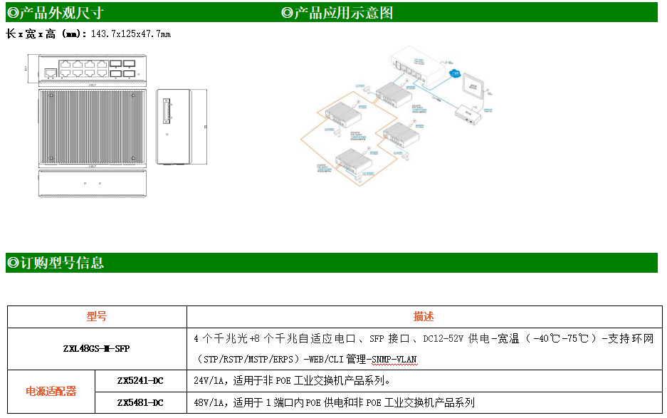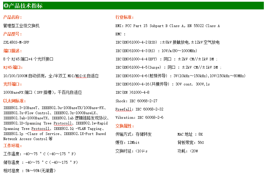 ZXL48GS-M-SFP是網管型工業以太網交換機,產品符合FCC、CE、RoHS標準。支持4個千兆光口和8個千兆電口;支持工業現場所需的以太網二層協議,保證通信網絡的穩定性;該系列交換機采用低功耗、無風扇設計,確保無噪聲干擾,同時支持-40~75℃工作溫度和良好的EMC電磁兼容性能,保證在惡劣的工業環境中保持穩定的工作,為工廠自動化,智能交通,視頻監控等工業應用領域組建快速穩定的網絡終端接入網絡提供安全可靠的解決方案。