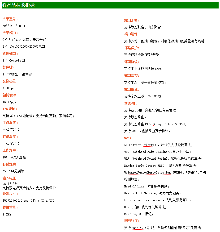 ●網絡冗余:支持STP/RSTP/MSTP,支持ERPS(自愈時間<20ms)
