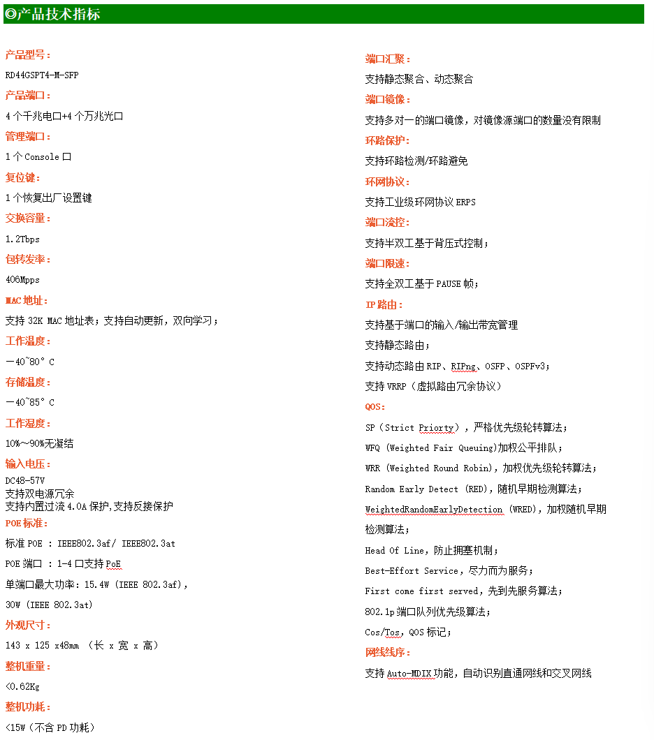 ●網(wǎng)絡(luò)冗余:支持STP/RSTP/MSTP,支持ERPS(自愈時間<20ms)