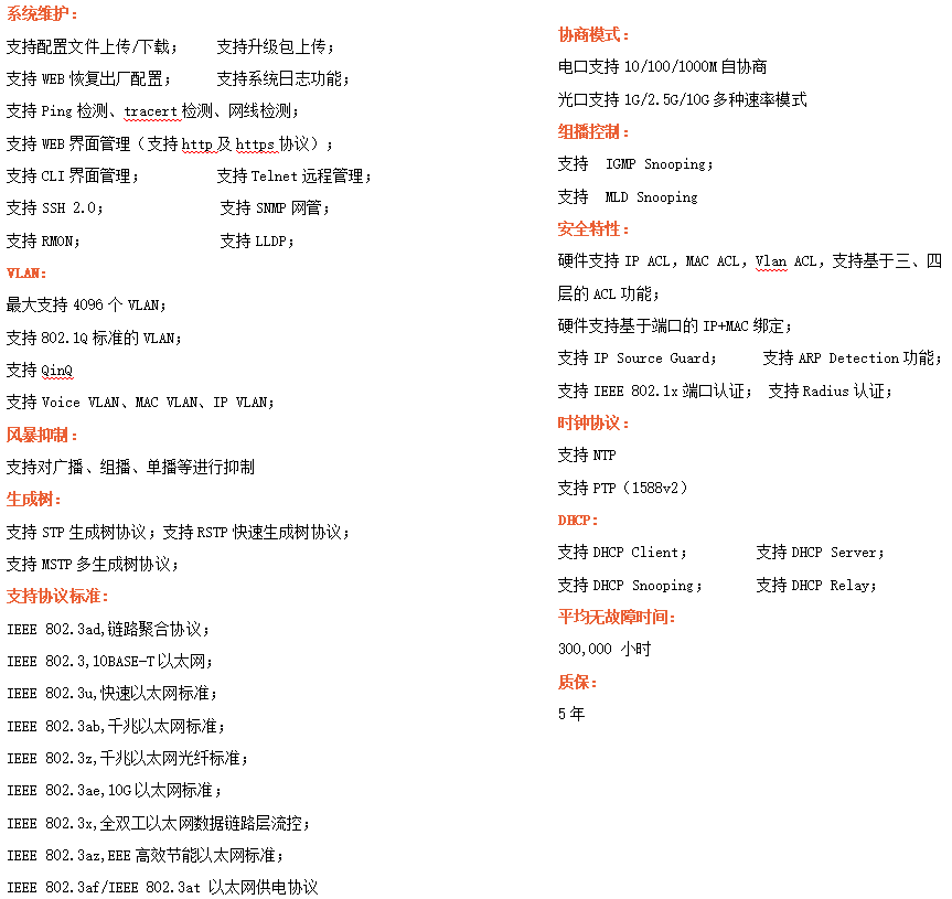 ●管理功能:支持WEB、CLI、SNMP等多種管理方式