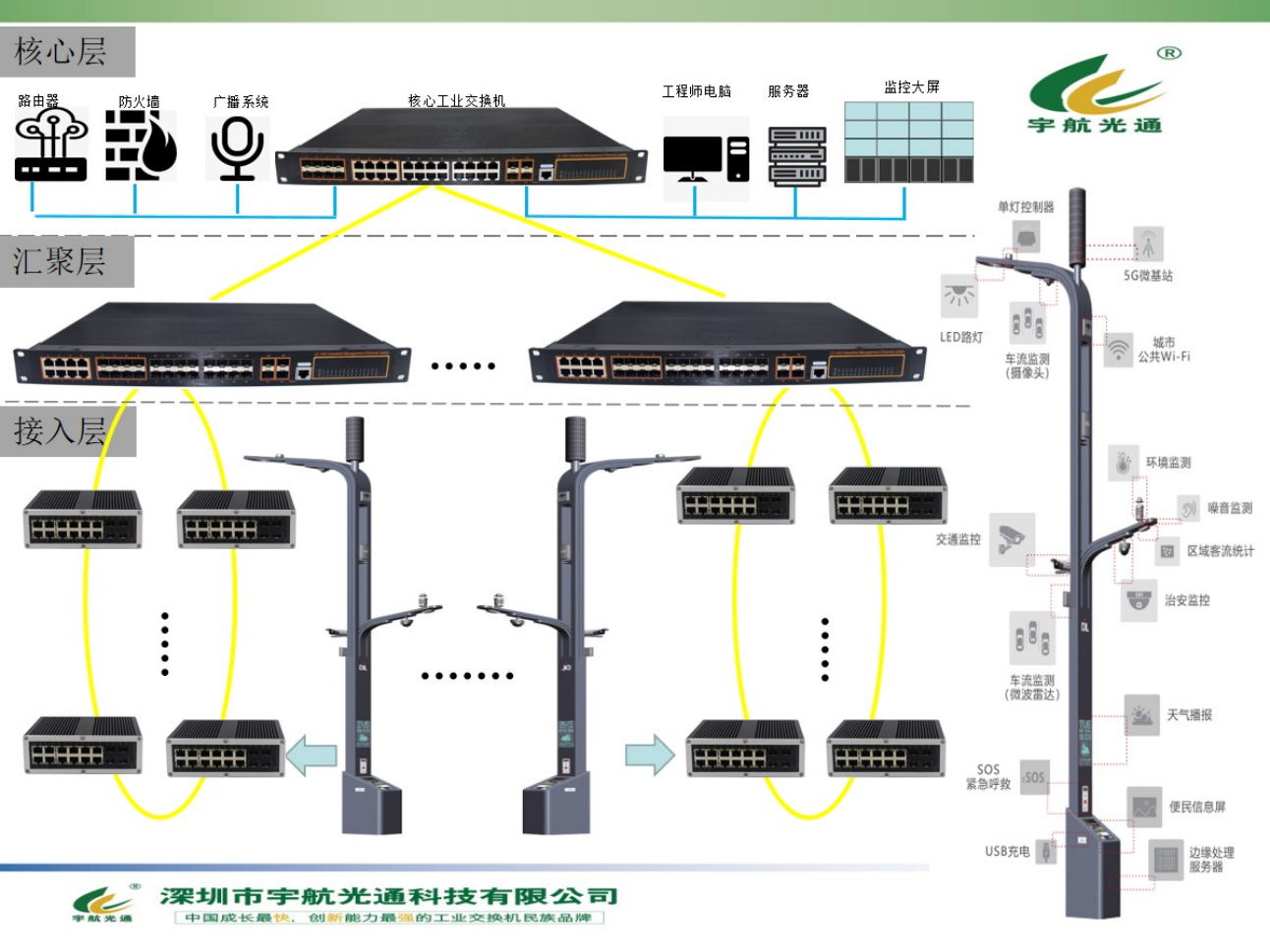 在智慧燈桿項目中對每個設備通過VIAN劃分每個業務端口對應每個系統實現多系統數據互不干擾與多系統的數據隔離。并且針對分布式控制系統的時間同步精度要求,在本項目還采用網絡化測量及控制系統的精確時鐘同步協議(IEEE 1588精密時間協議),可實現解決在分布式網絡中出現的網絡傳輸時延的不確定性,導致網絡命令觸發的同步精度差;從而提高了數據交換的準確性和支持大數據量的網絡交換。